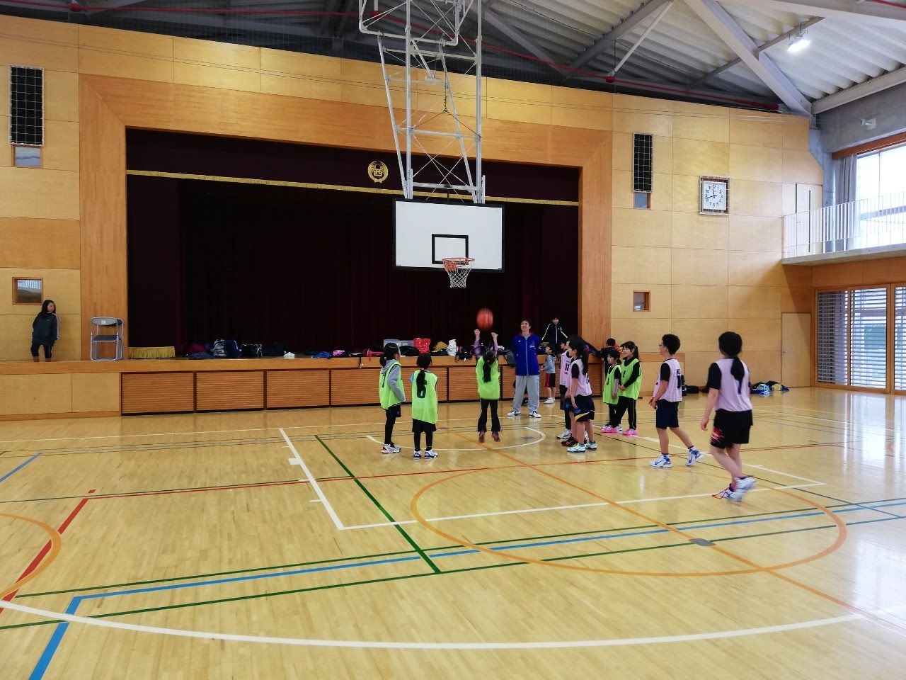 稲沢西小学校で活動しているミニバスチームへ伺い、交流試合を開催しました。