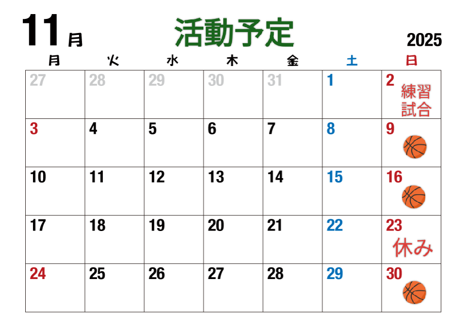 11月の活動予定です🏀