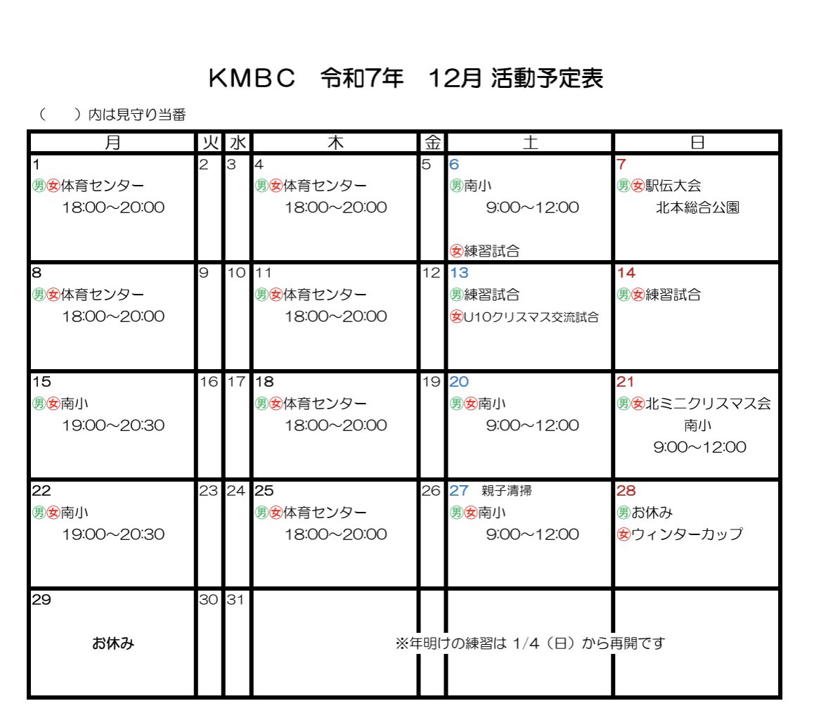 🏀12月の予定🏀