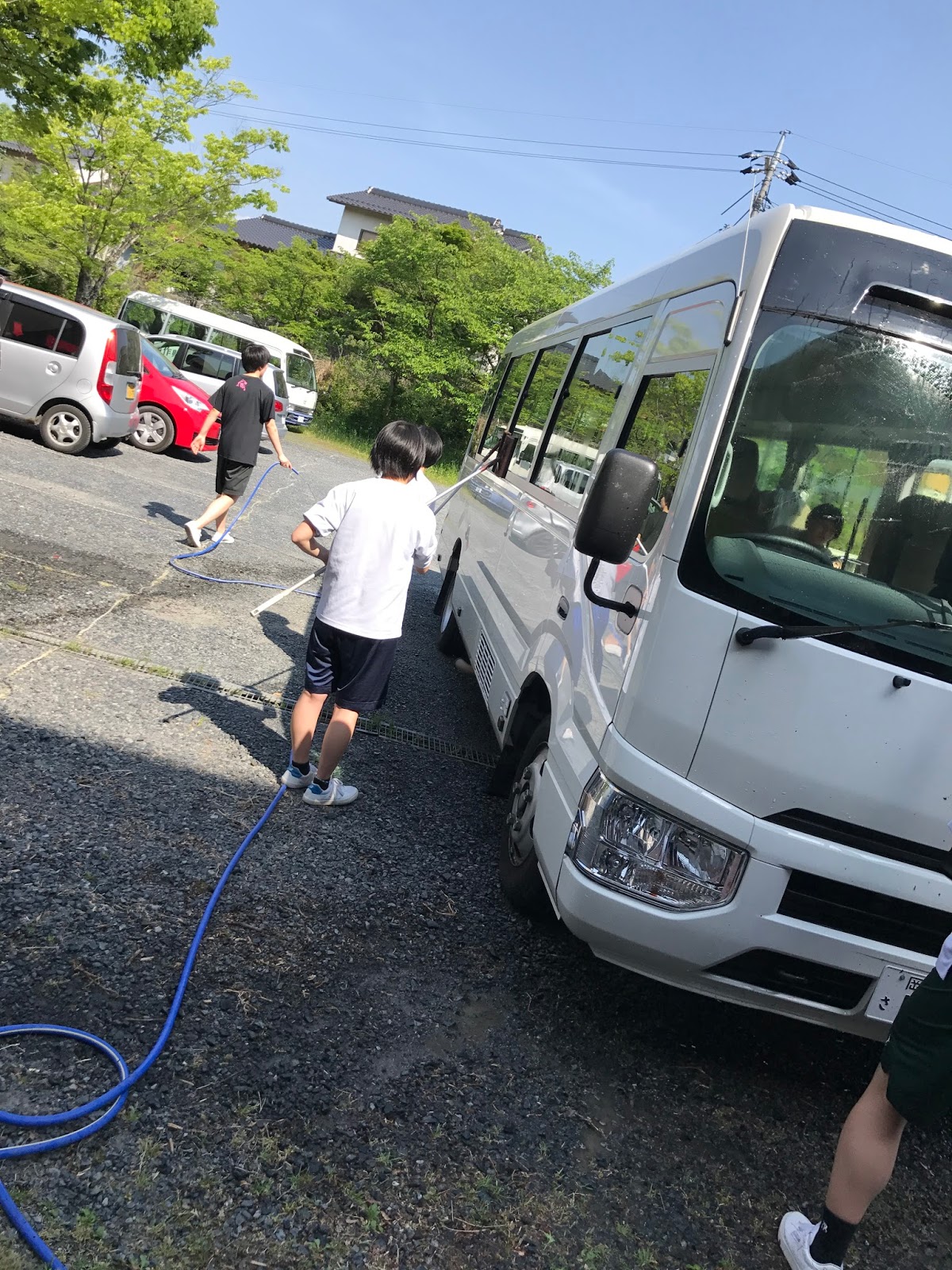 その帰りにバスが虫だらけになったので掃除しました!!