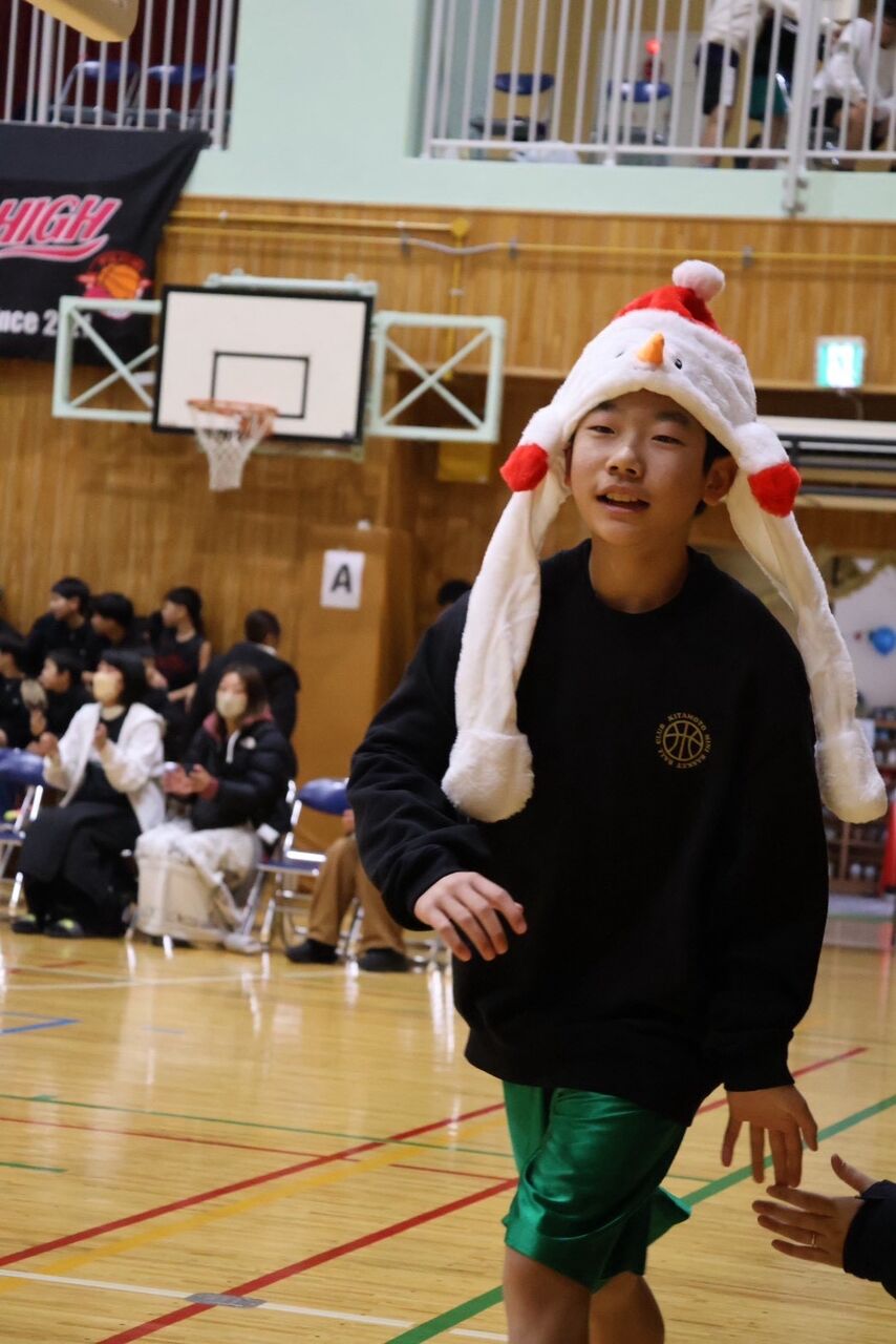 今年の北ミニ男子は、雪だるまサンタの帽子で参加しましたよ🧑🎄