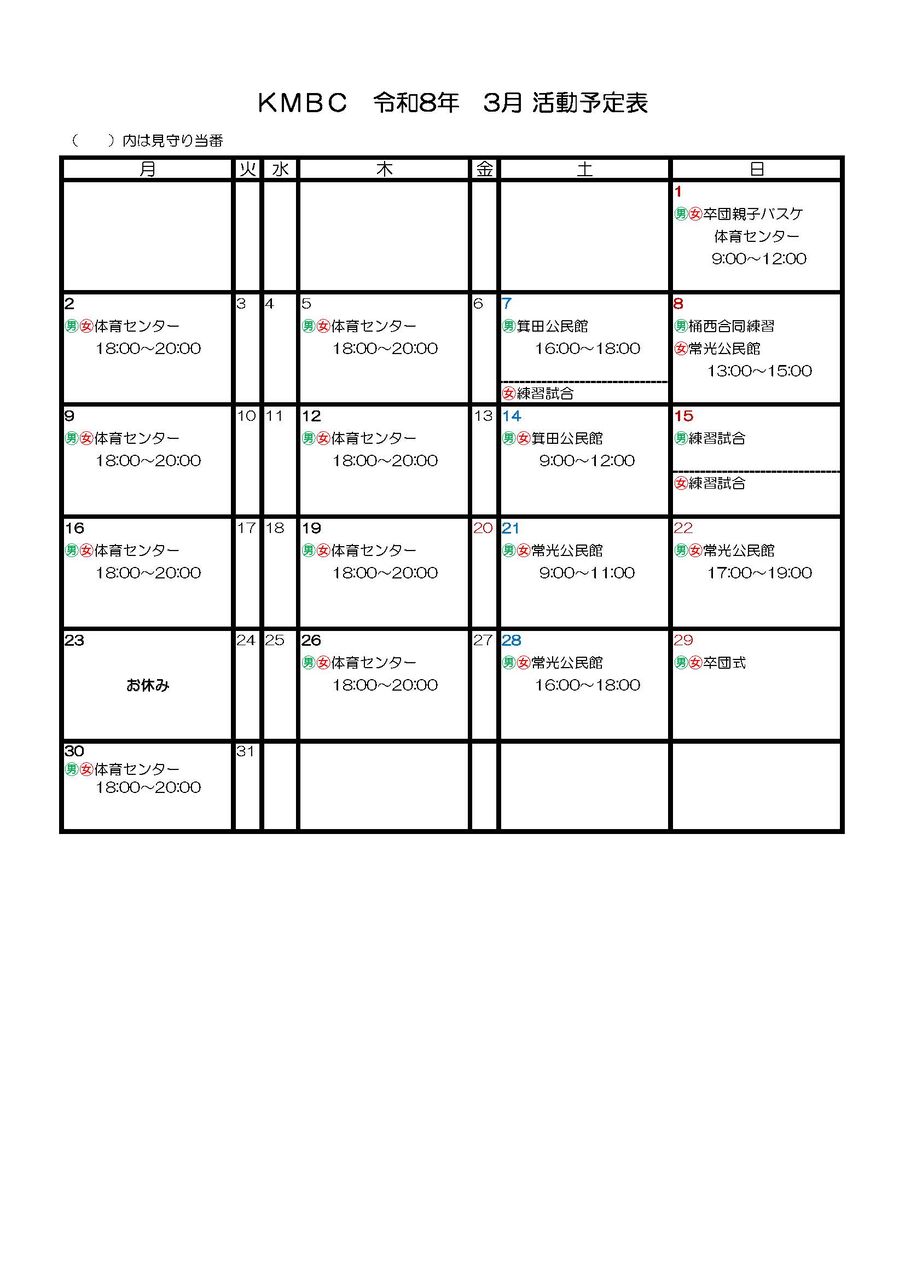 🏀2026年3月の予定🏀